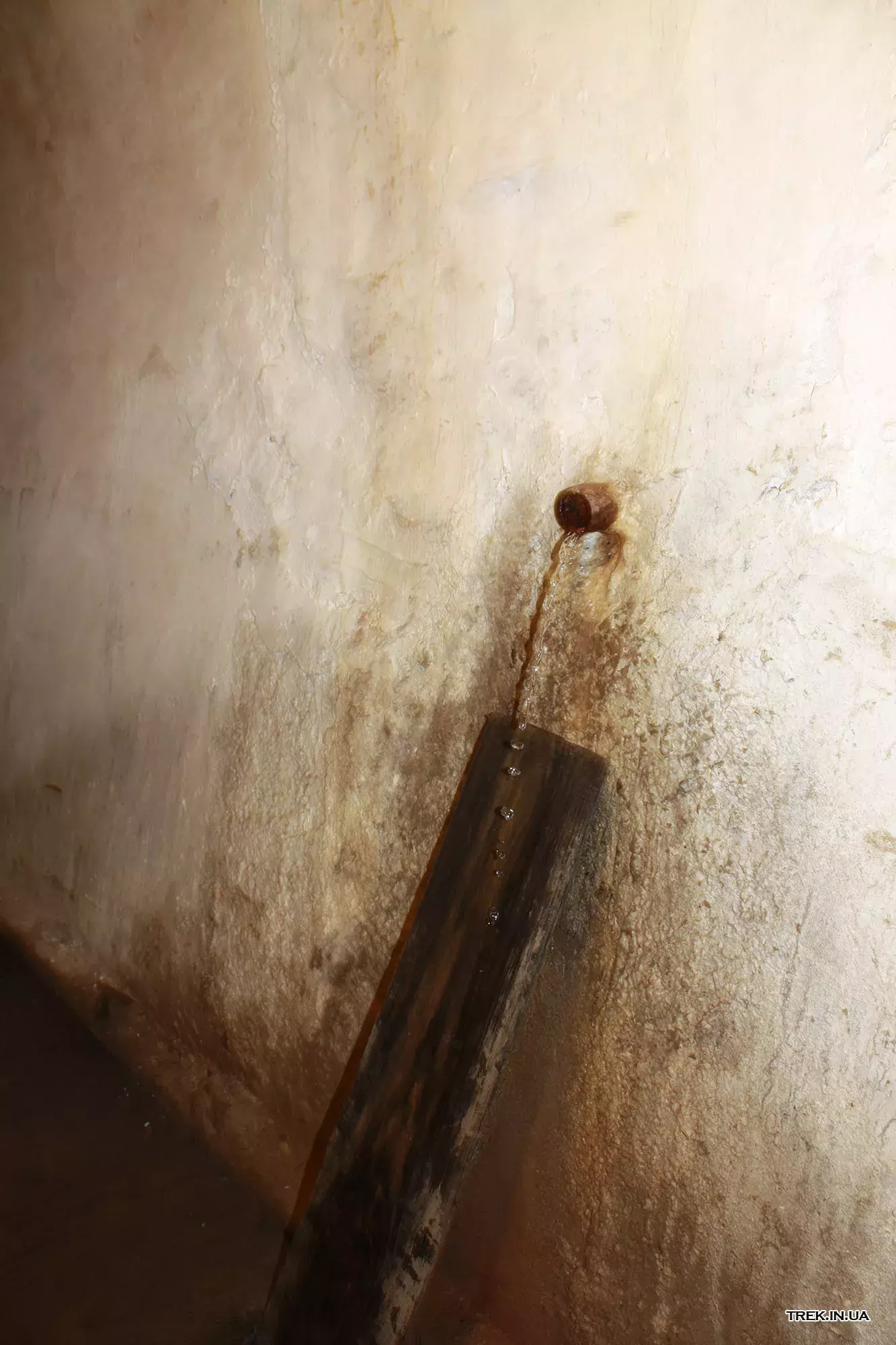 У середині маршруту, між сходами та складом, розташоване природне джерело води — одне з двох у бункері. Це унікальна деталь споруди, адже вода тут і сьогодні чиста та придатна до пиття (на фото видно це місце).