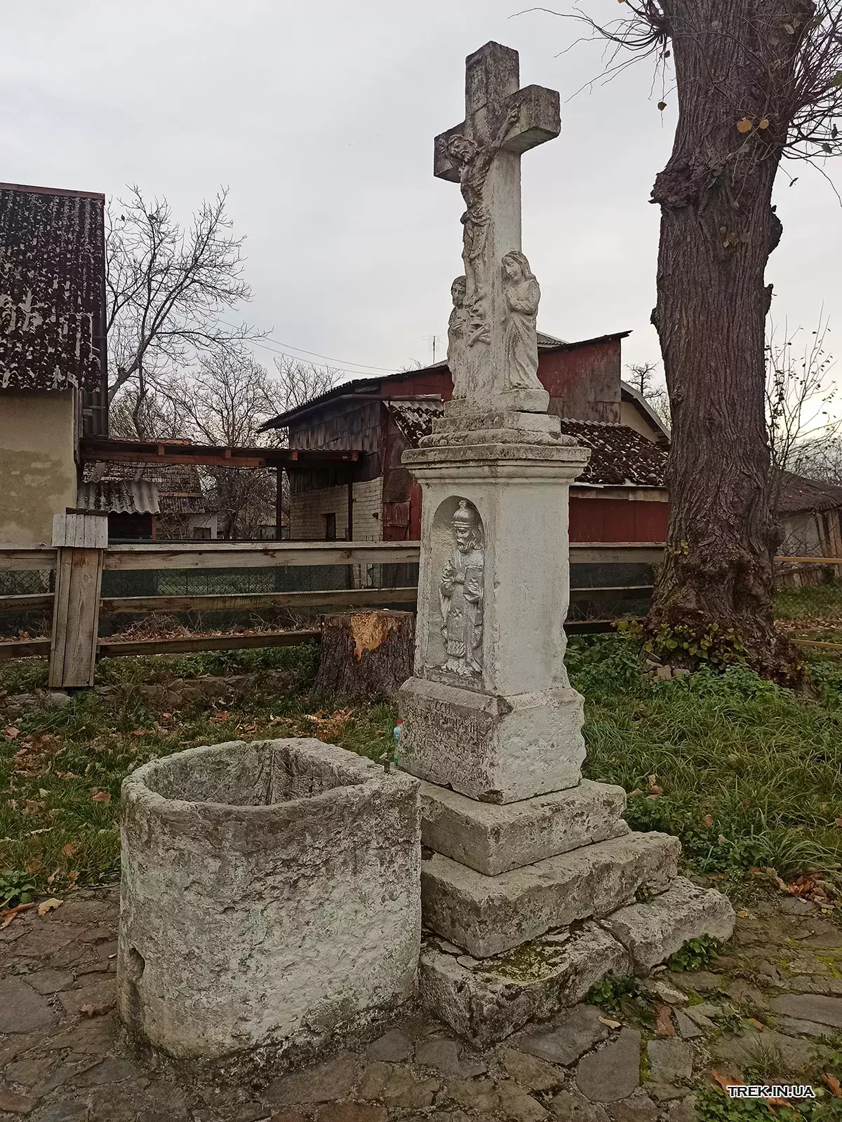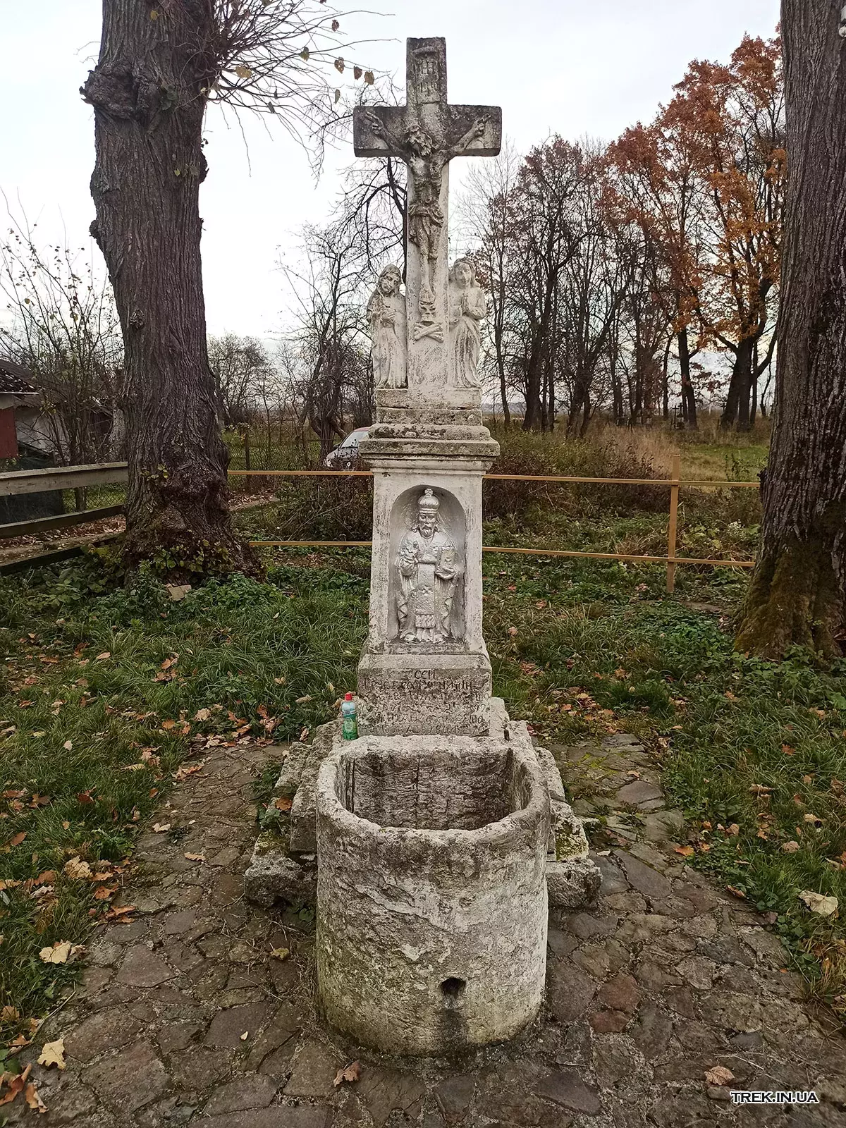 На церковному подвір’ї зберігся також стародавній кам’яний хрест і витесаний із каменю резервуар для освяченої води — рідкісна деталь, яку можна побачити не в кожній церкві.