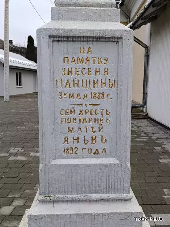 На памятку знесення панщинь 3 мая 1888 г. Сей хрестъ поставивъ Матей ЯнѢвъ 1892 года