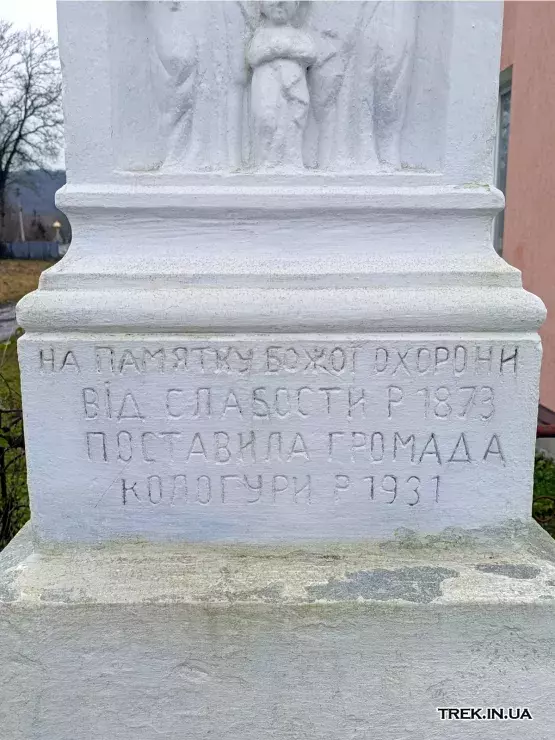 На памятку Божої охорони від слабости р 1873 поставила громада Кологури р 1931