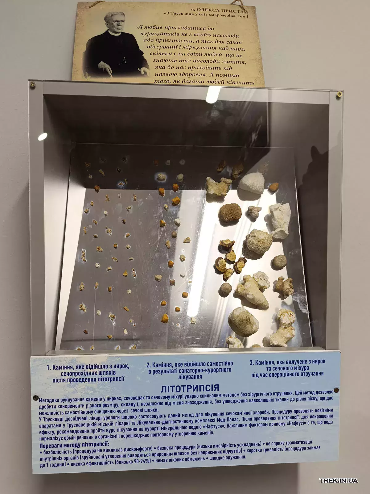 Окрема частина експозицій присвячена видобутку нафти та розвитку Трускавця як бальнеологічного курорту.