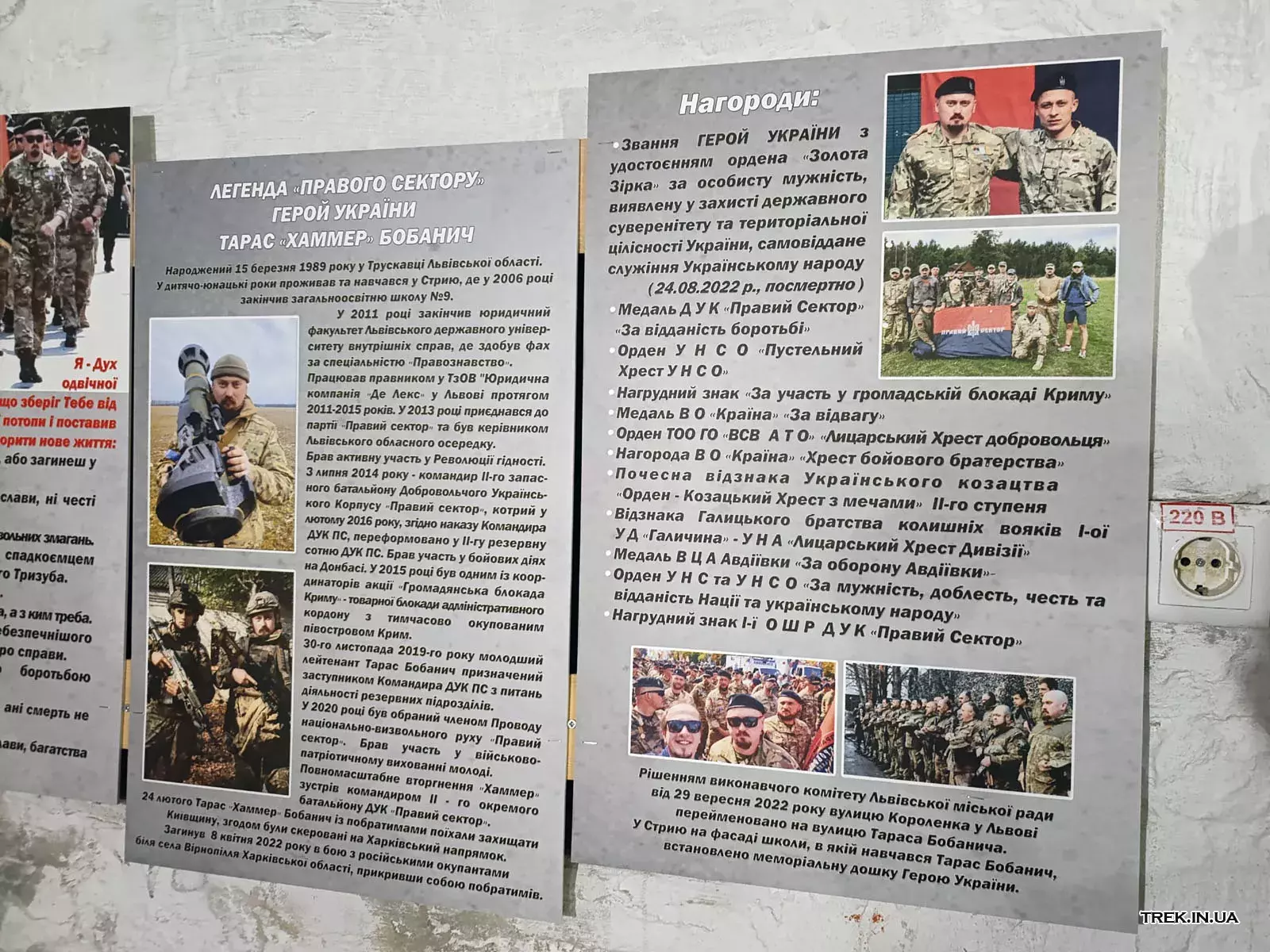 Серед експонатів я побачила знайоме обличчя — Тарас Бобанич «Хаммер», герой сучасної війни, з яким ми колись навчалися в одній школі. Він родом із Трускавця. Це нагадування, що історія України пишеться просто зараз — і ми всі є її частиною.